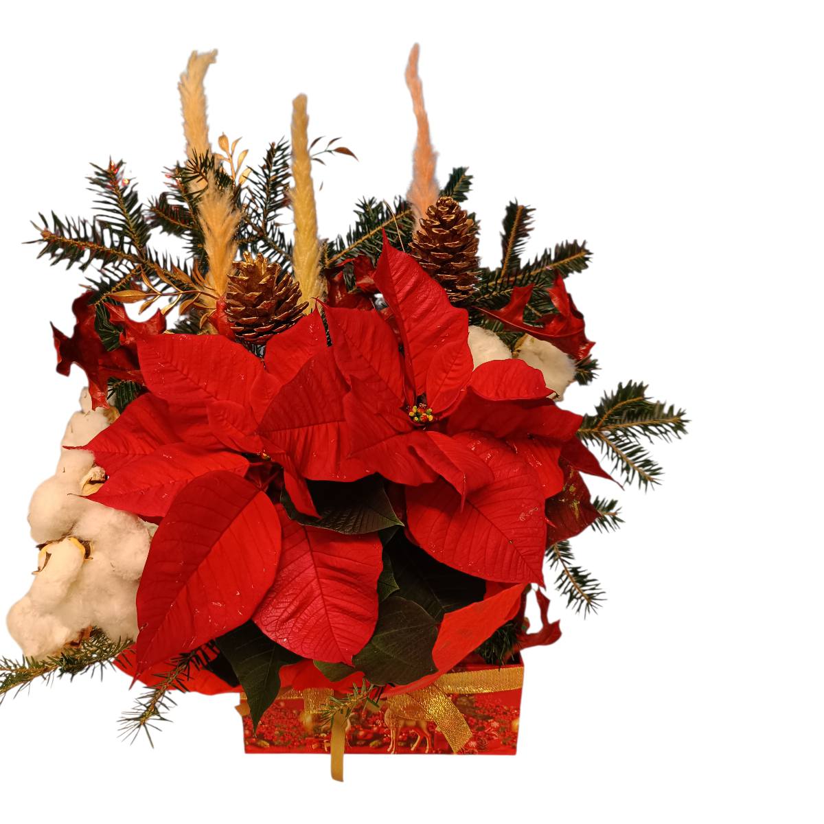 Γιορτινή Σύνθεση Χριστουγέννων και Πρωτοχρονιάς σε κουτί Δώρου