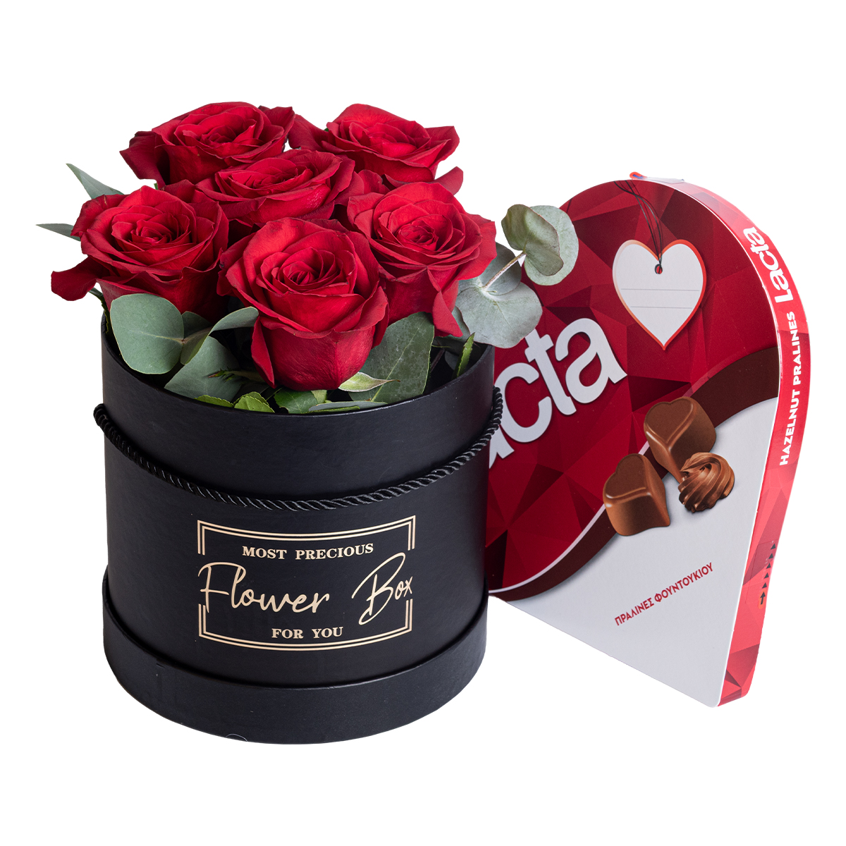Μια εντυπωσιακή σύνθεση λουλουδιών με φρέσκα κόκκινα τριαντάφυλλα του πάθους συνοδεύονται από σοκολατάκια Lacta σε σχήμα καρδιάς, δημιουργώντας ένα ρομαντικό και αξέχαστο δώρο για τα αγαπημένα σας πρόσωπα.