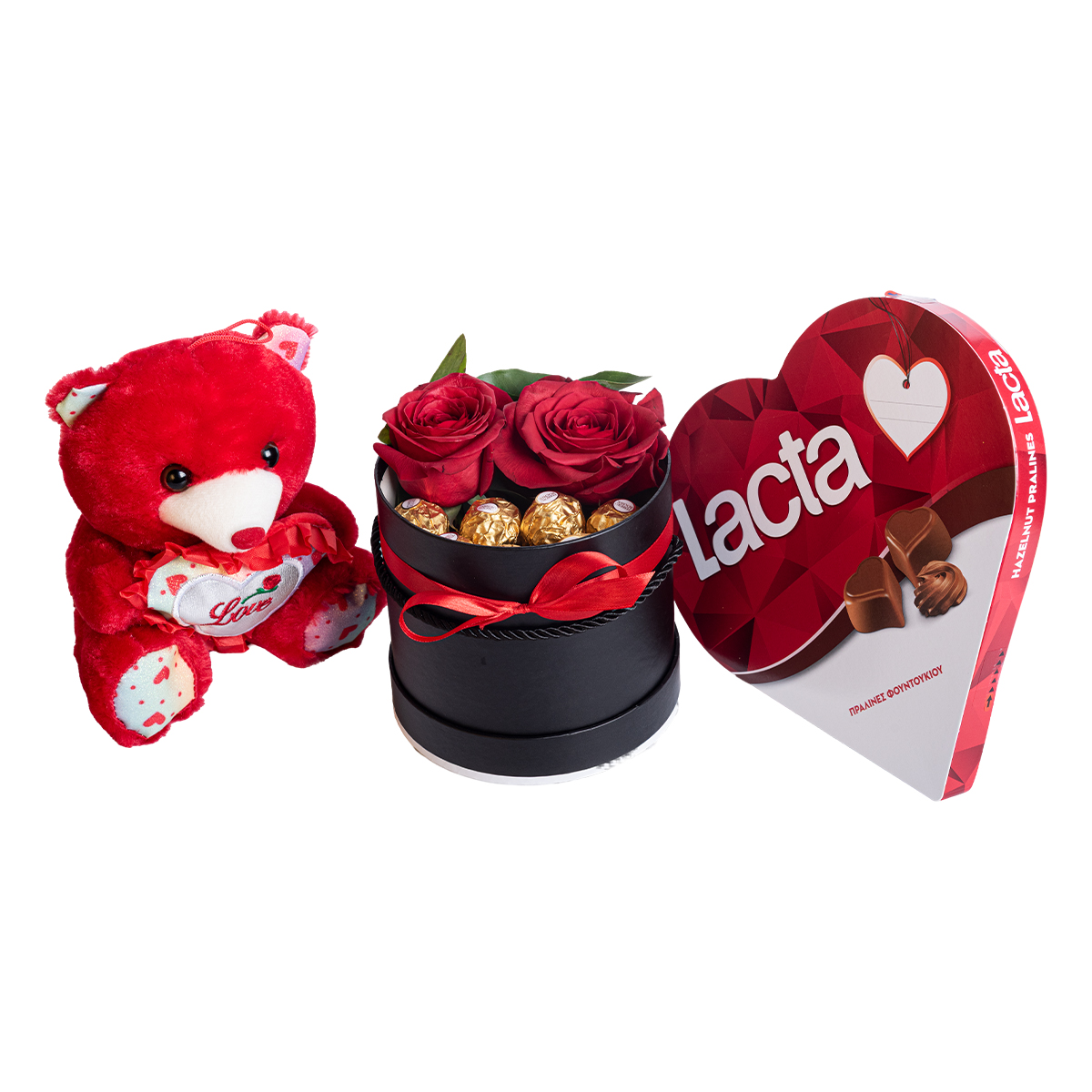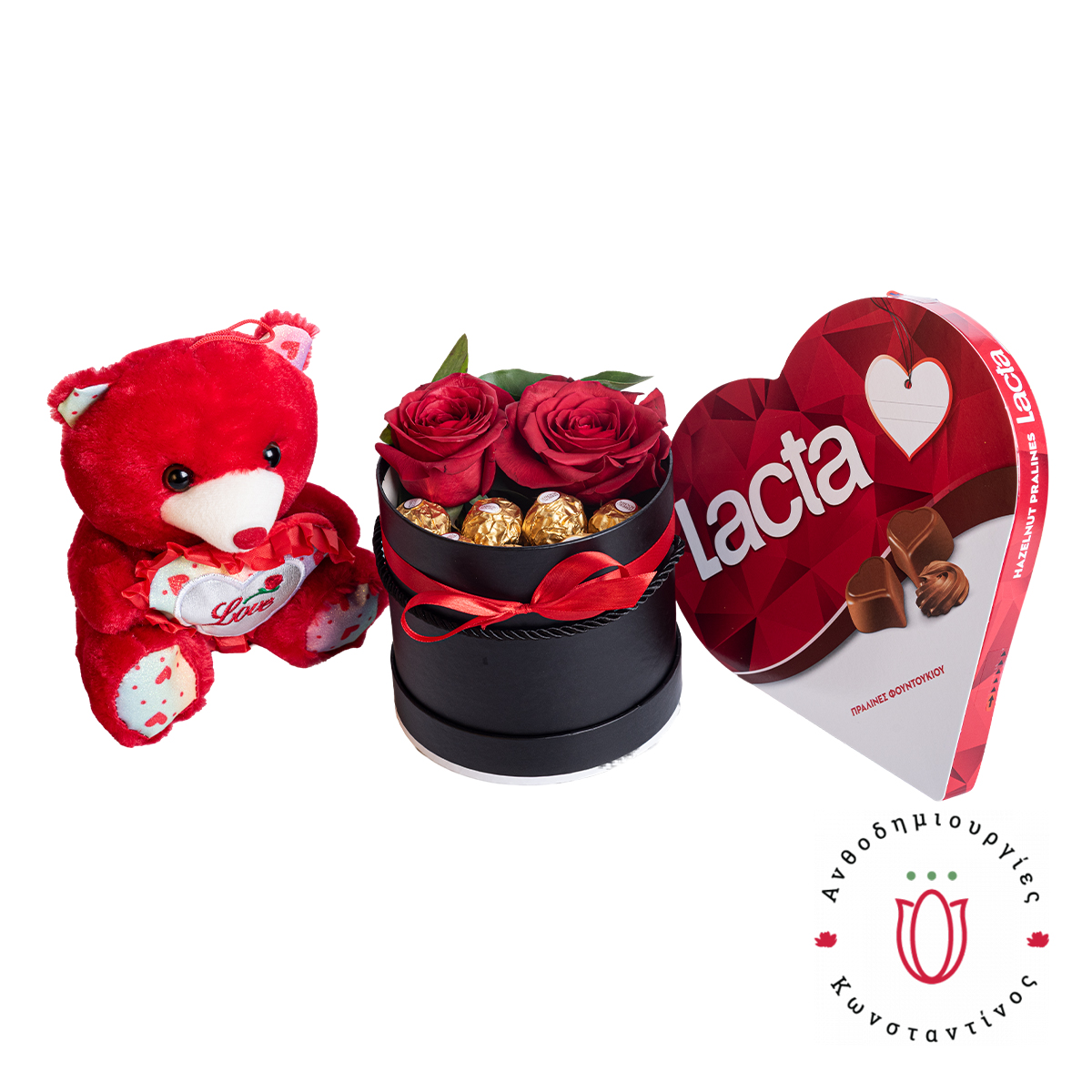 ΔΩΡΑ ΜΕ ΤΡΙΑΝΤΑΦΥΛΛΑ ΣΟΚΟΛΑΤΑΚΙΑ ΚΑΙ ΛΟΥΤΡΙΝΟ ΑΡΚΟΥΔΑΚΙ ΥΨΟΥΣ 22 CM.