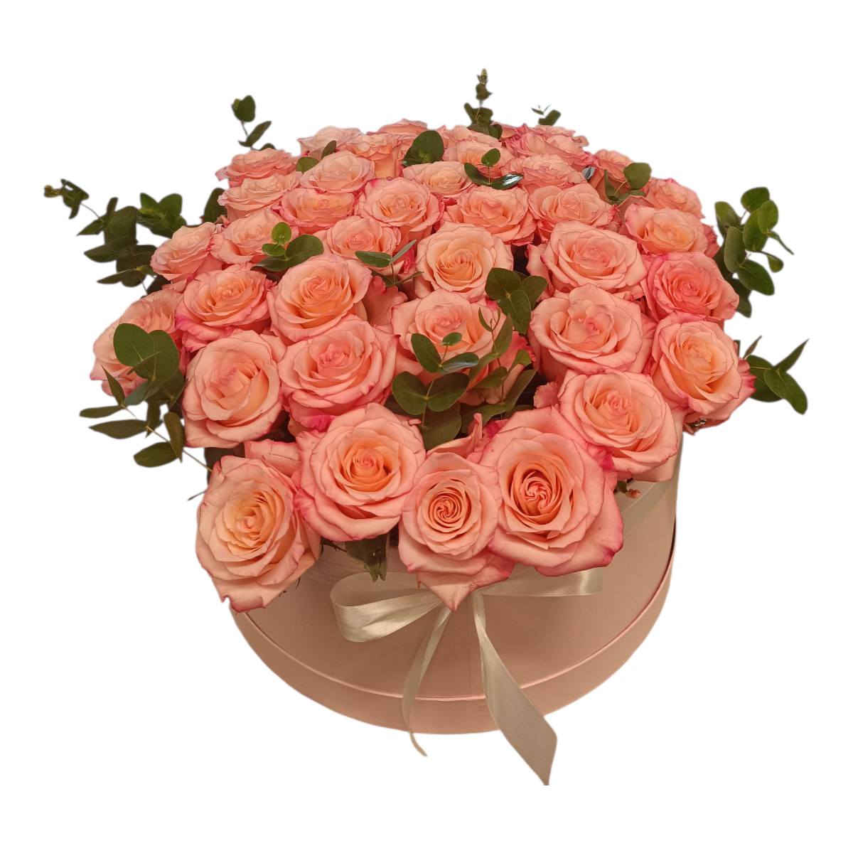 Η «Ροζ Πολυτέλεια» είναι μια μοναδική σύνθεση με φρέσκα τριαντάφυλλα Εκουαδόρ μαζί με πρασινάδες ευκαλύπτου σε κομψό κουτί δώρου πολυτελείας.